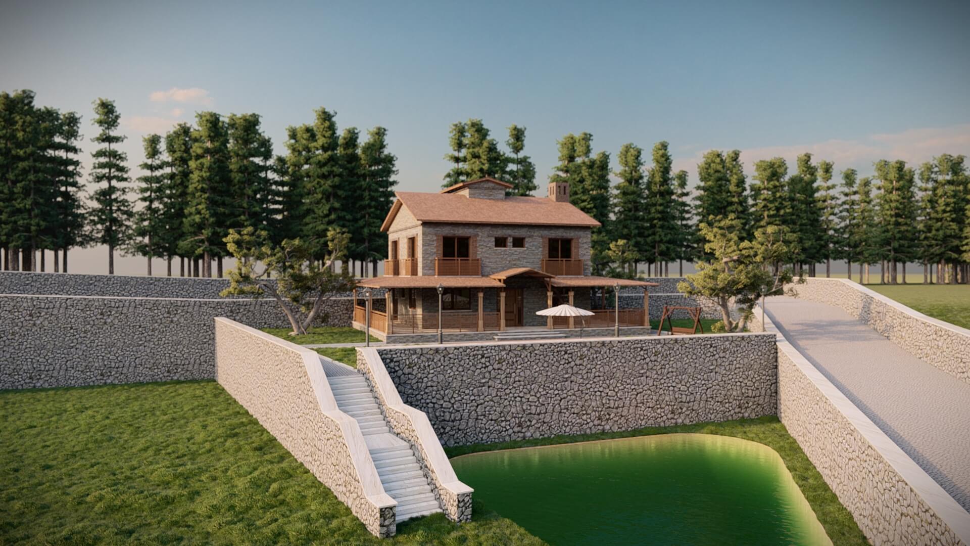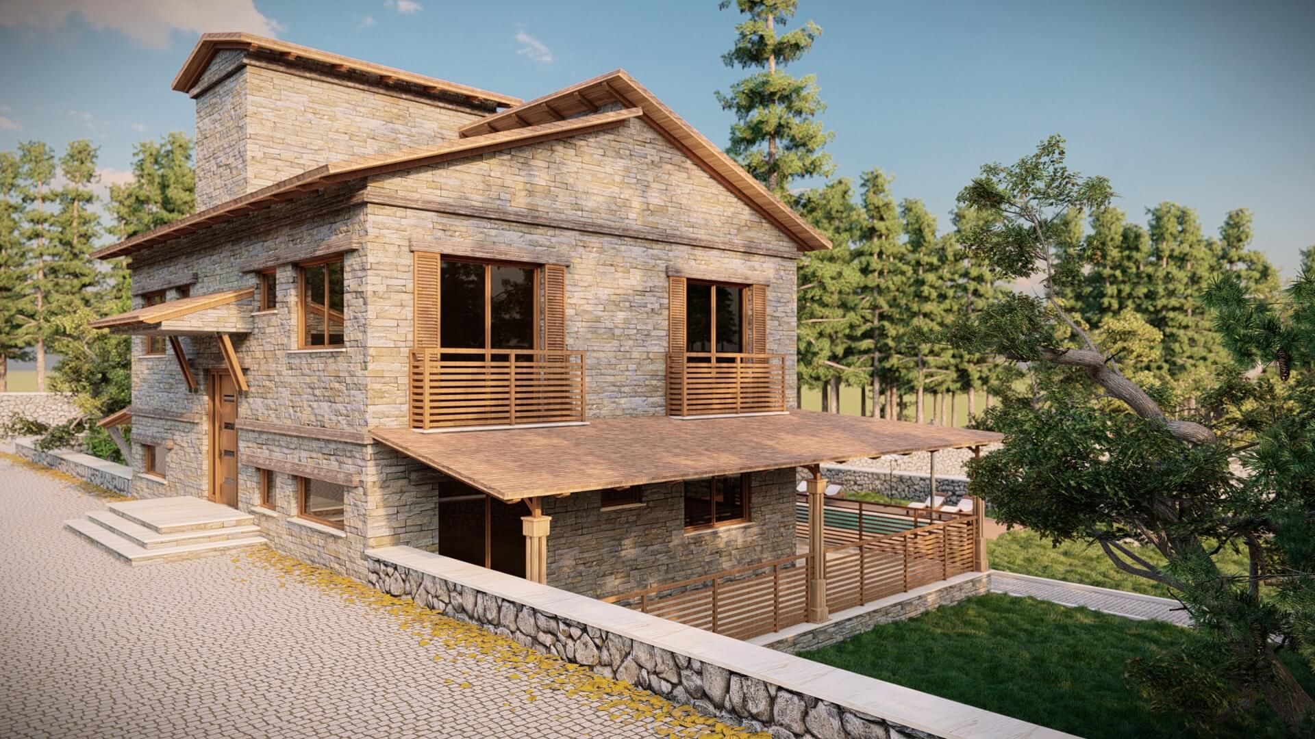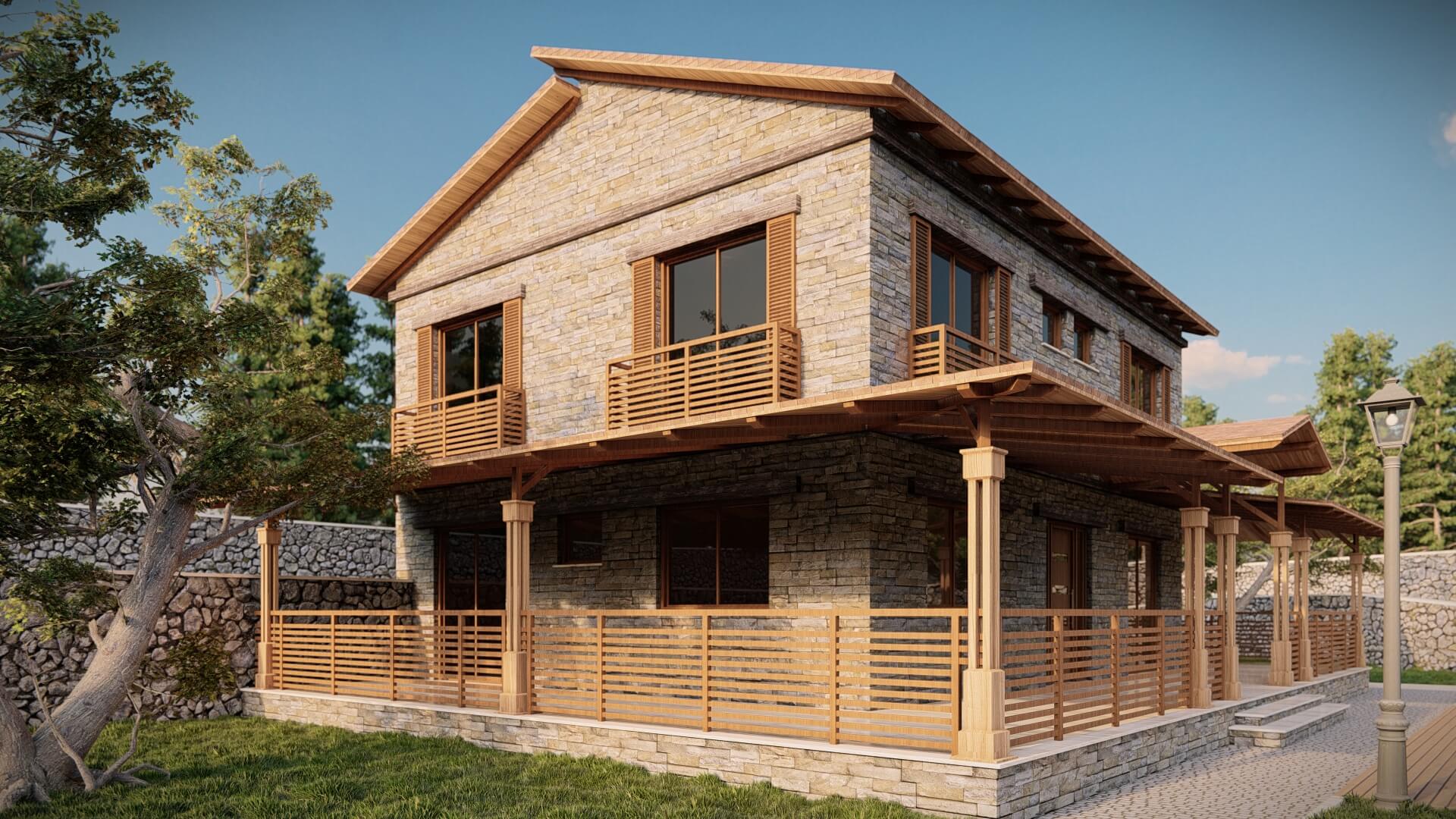 Antalya Demre ilçesi 10 dönümlük arazi üzerine tasarladığımız taş ev projemiz.