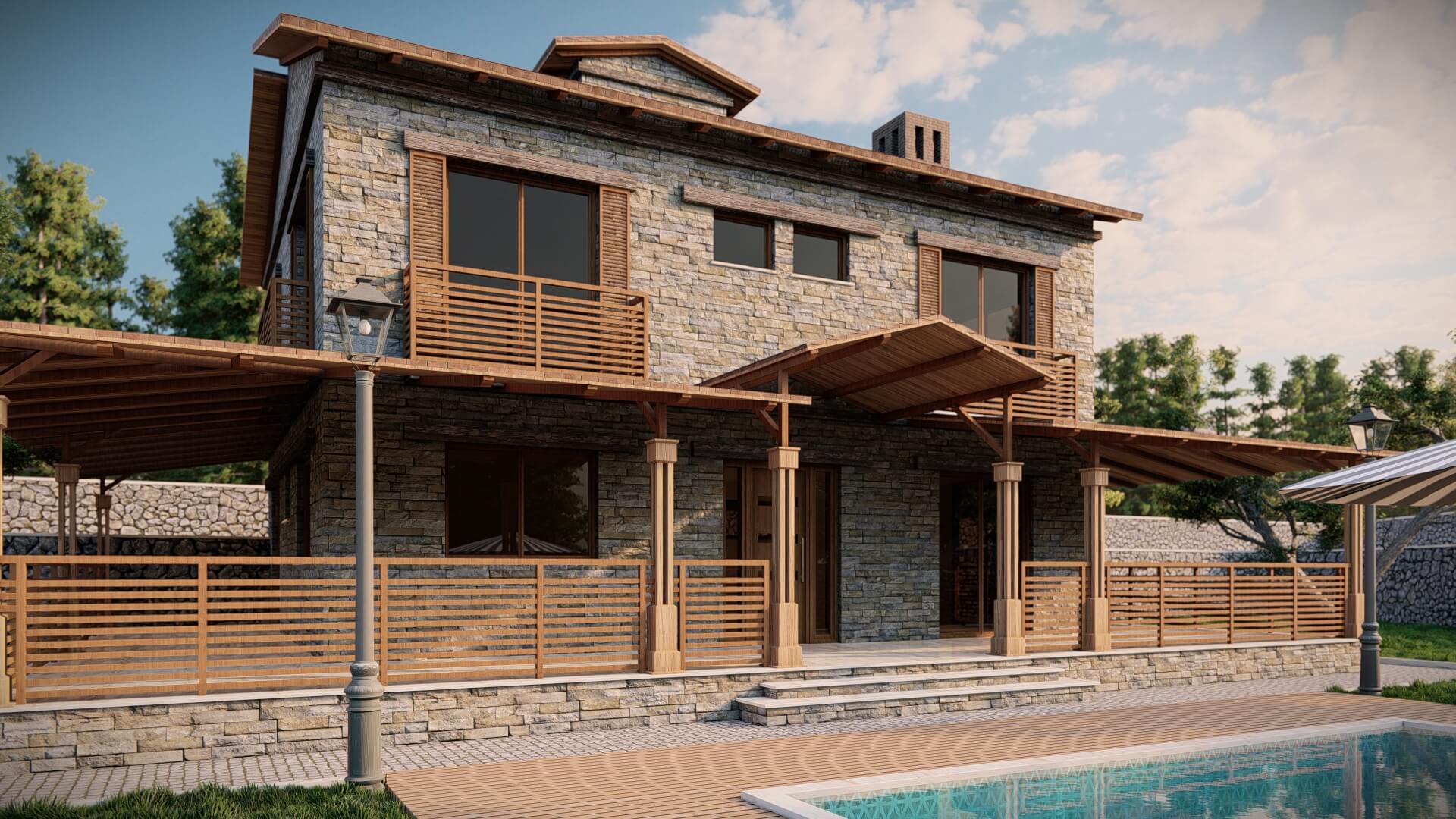 Antalya Demre ilçesi 10 dönümlük arazi üzerine tasarladığımız taş ev projemiz.